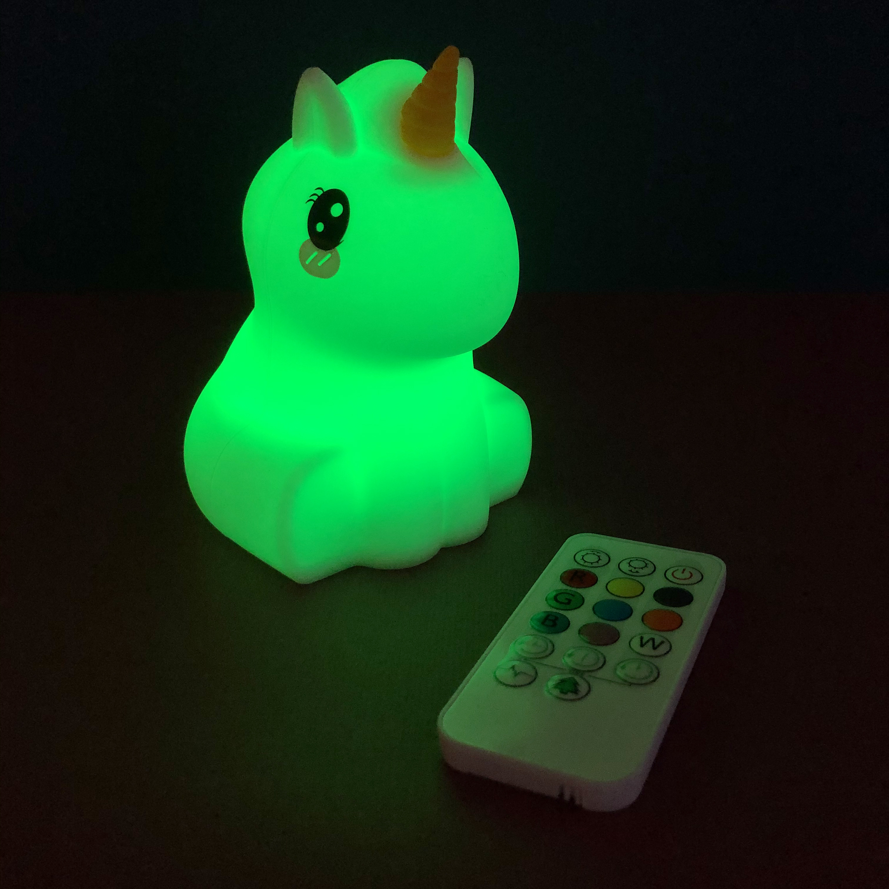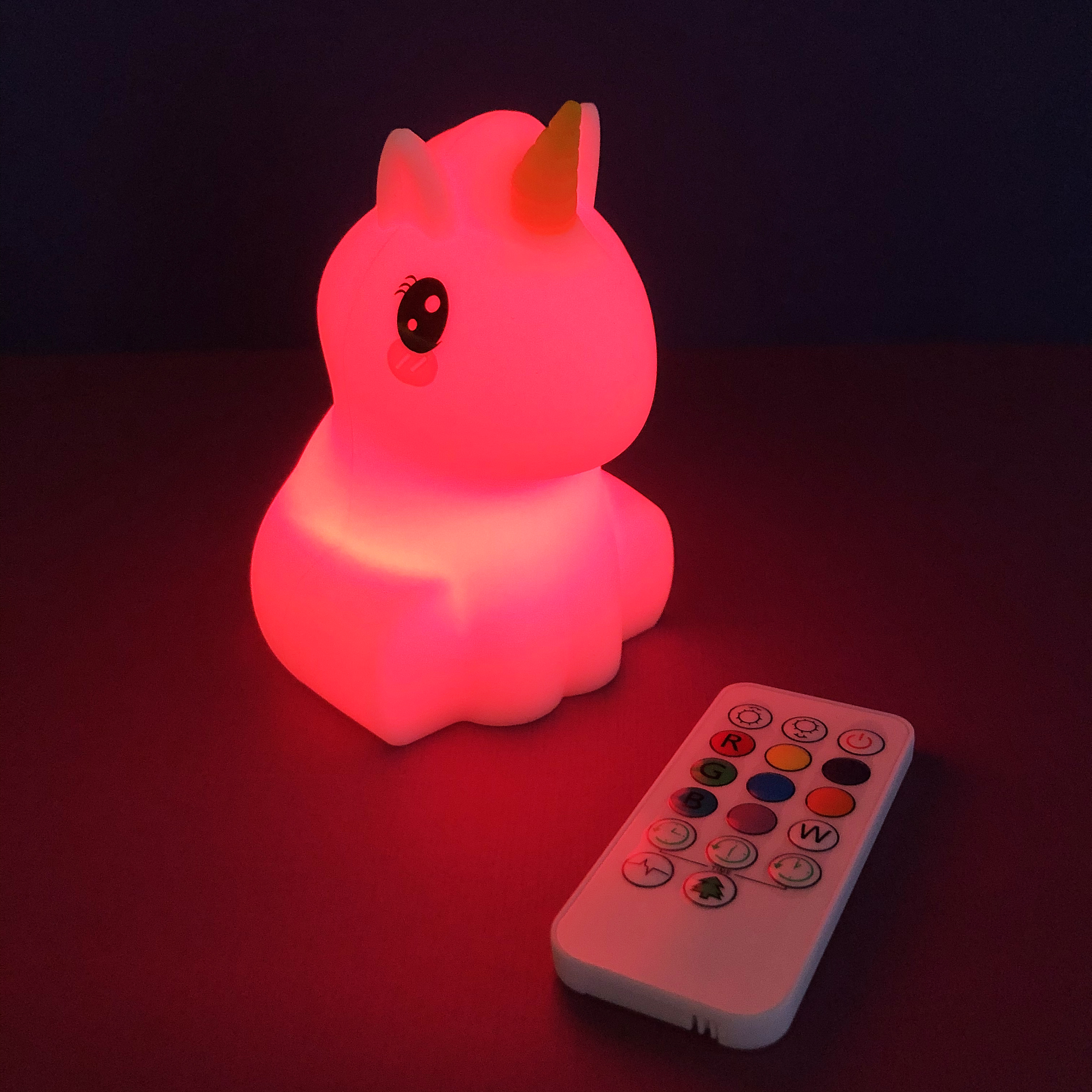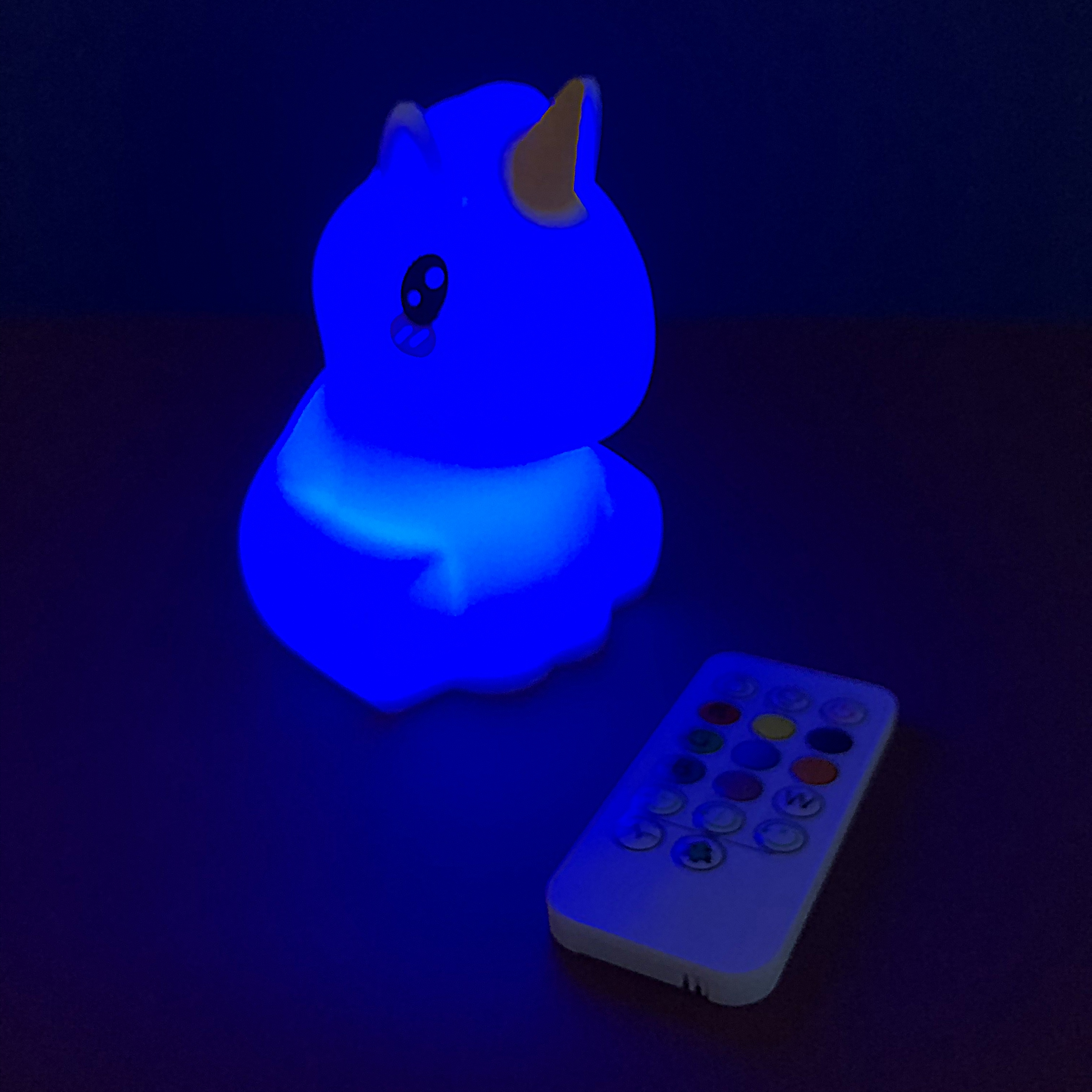 Jolie veilleuse en silicone doux  pour chambre d'enfants avec un éclairage multi couleurs par télécommande .