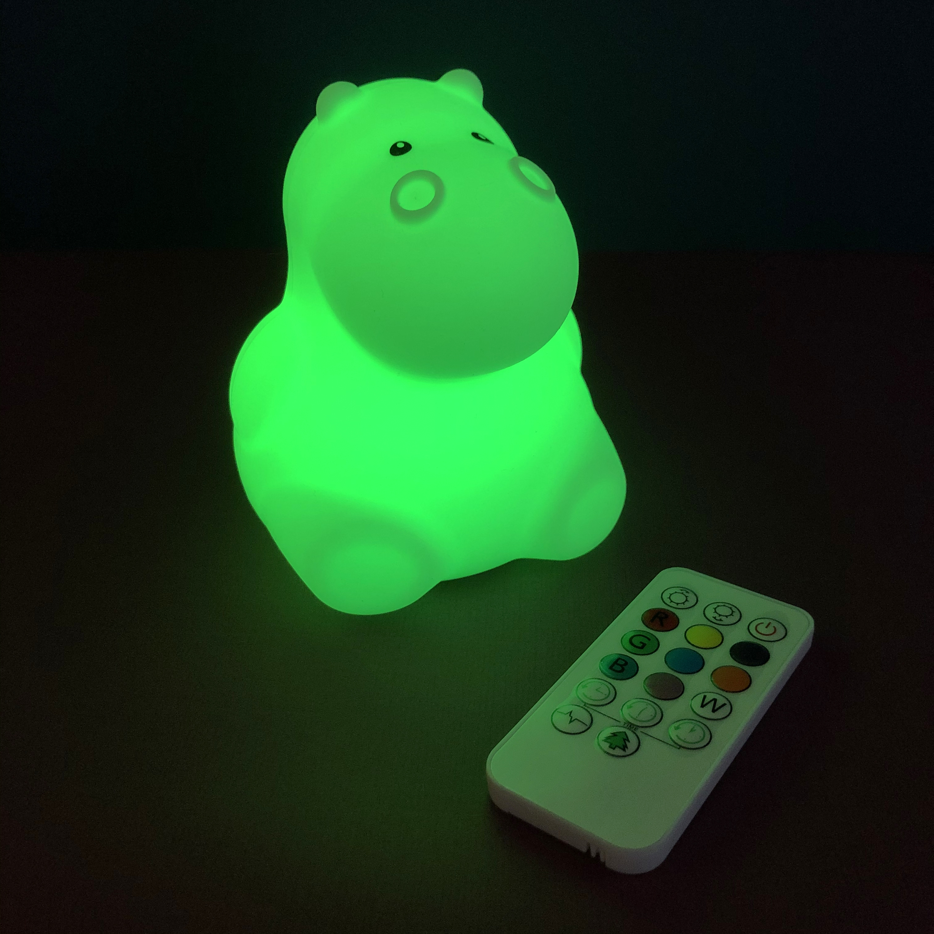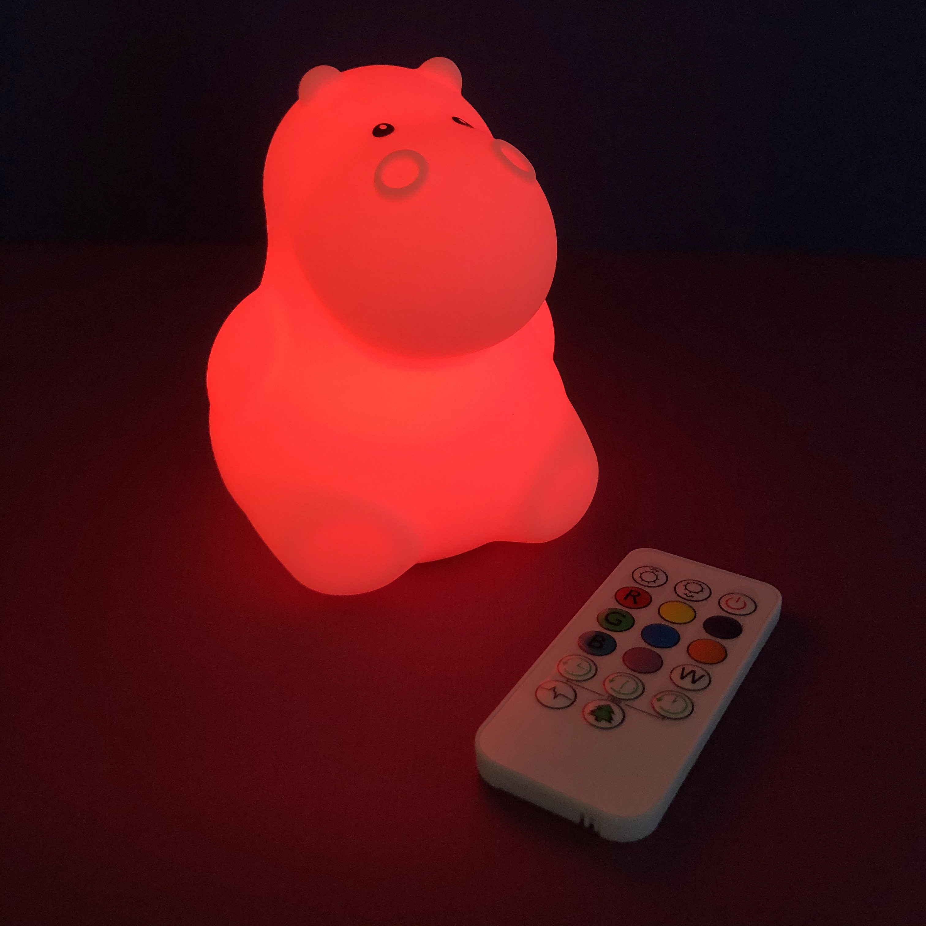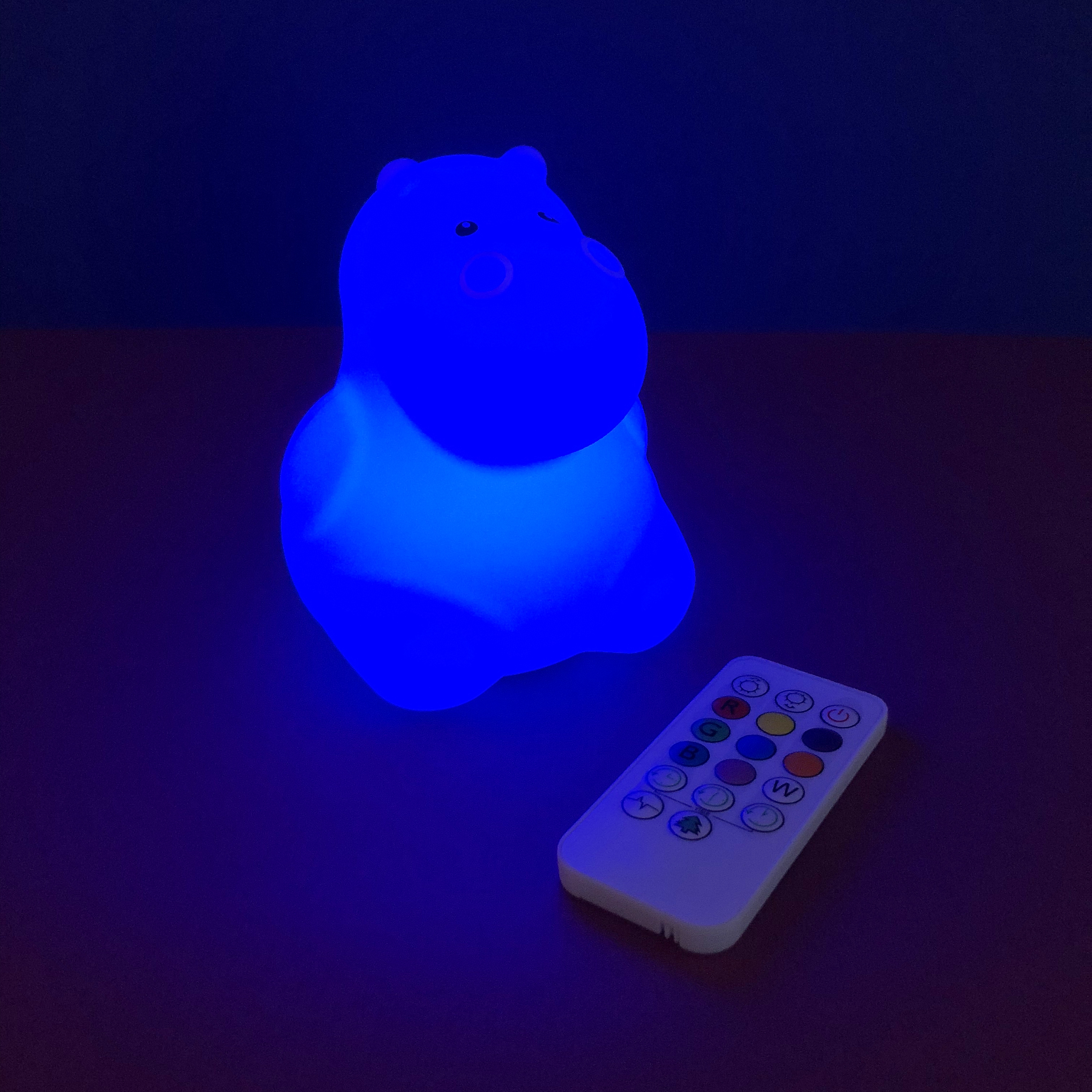 Jolie veilleuse en silicone doux  pour chambre d'enfants avec un éclairage multi couleurs par télécommande .